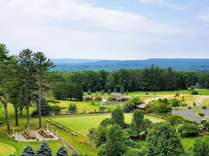 An outdoor adventure park offering zip lines, rope courses, and family-friendly activities