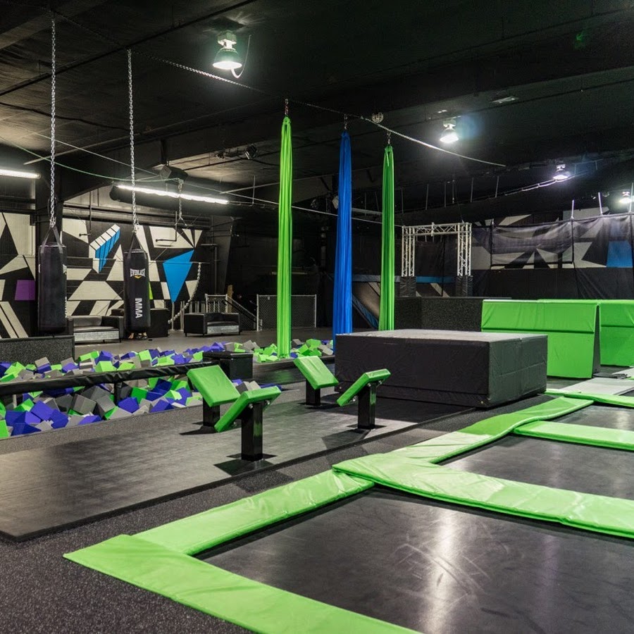 An indoor trampoline park and family entertainment center with jumping areas, obstacle courses, and active play for kids.