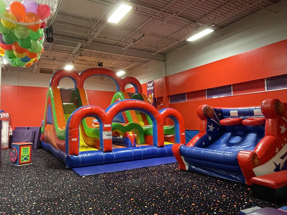 An indoor playground full of inflatable slides, bounce houses, obstacle courses. Great for birthday parties or open play sessions. Everything is designed around safe, energetic fun for kids.