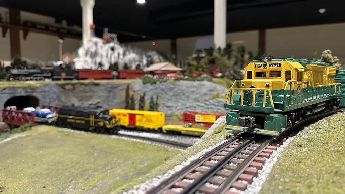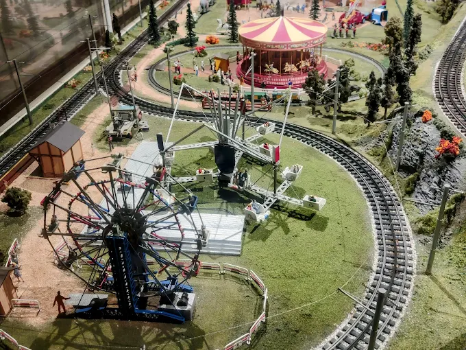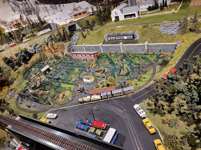 A miniature train exhibit with detailed landscapes, interactive displays, and kid-friendly fun.