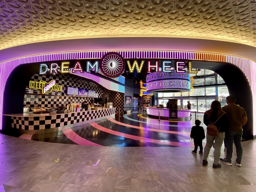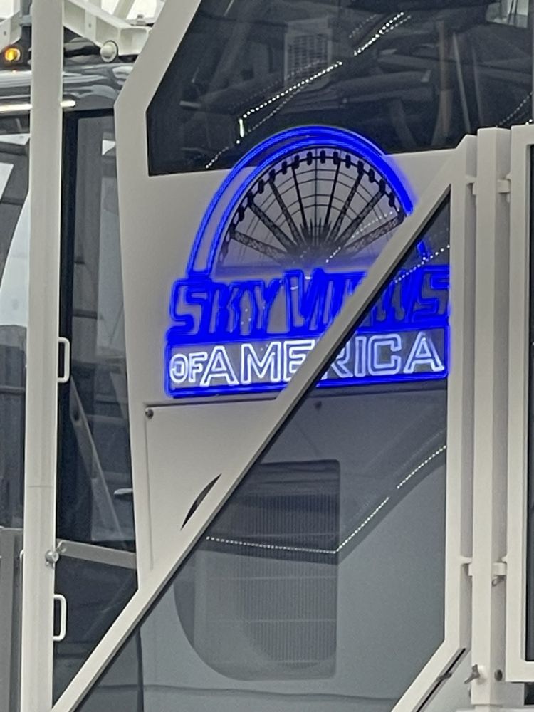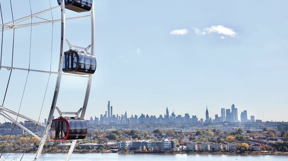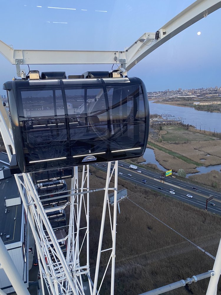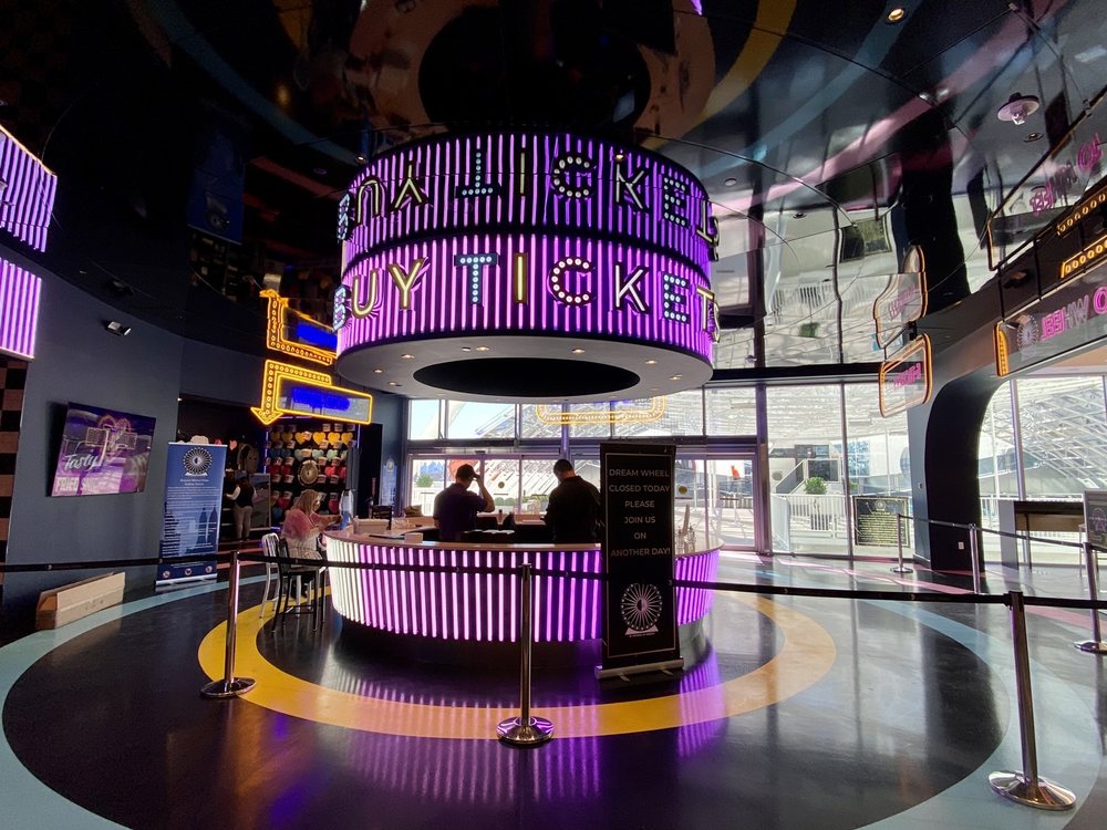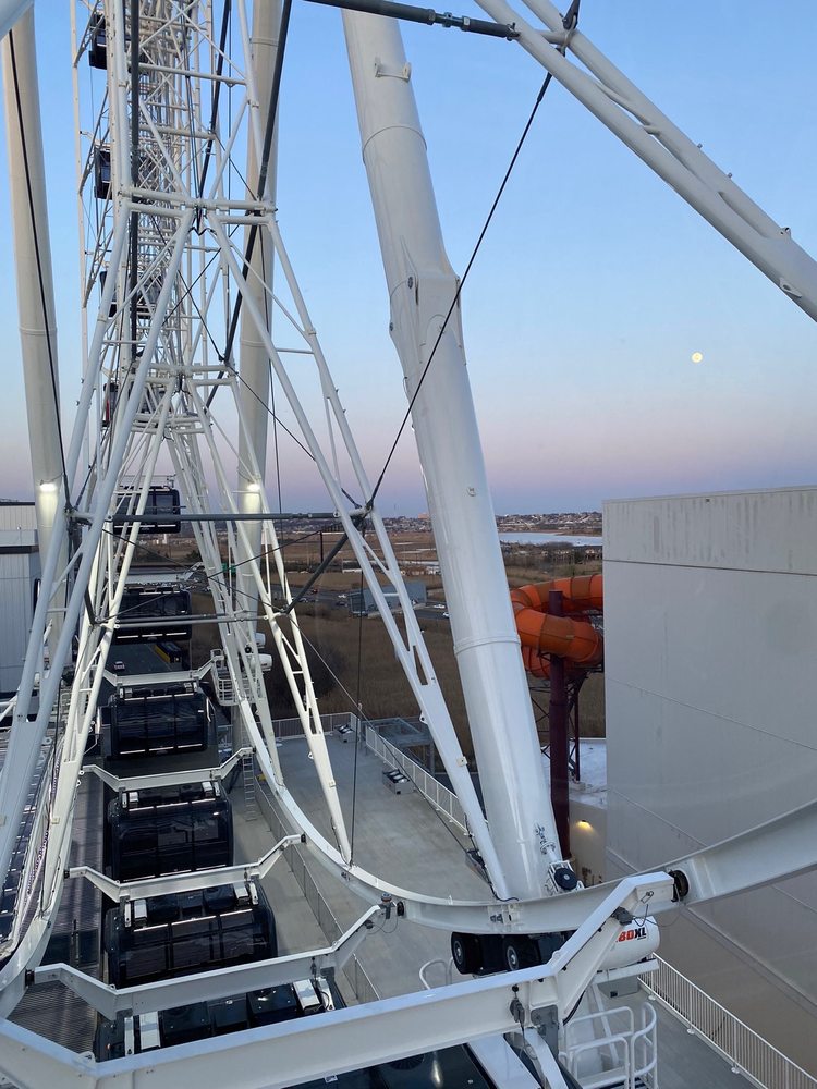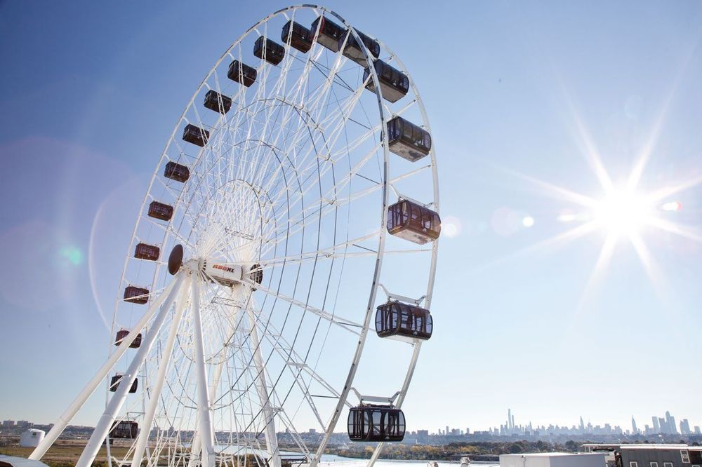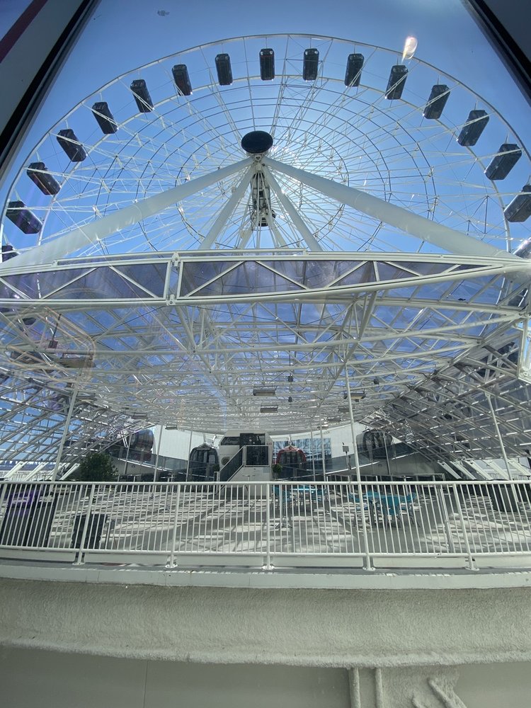 A towering observation wheel offering panoramic views of the surrounding area, providing a relaxing experience for visitors.