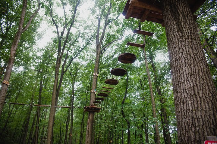 An outdoor ropes and zipline course offering challenging aerial obstacles for older kids and teens.