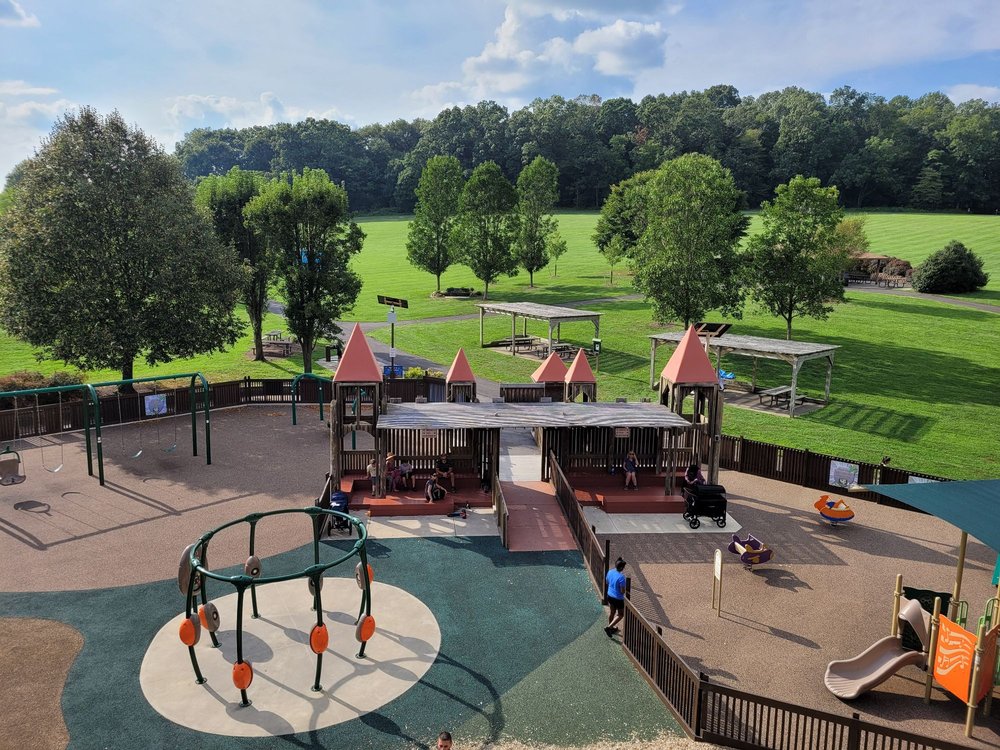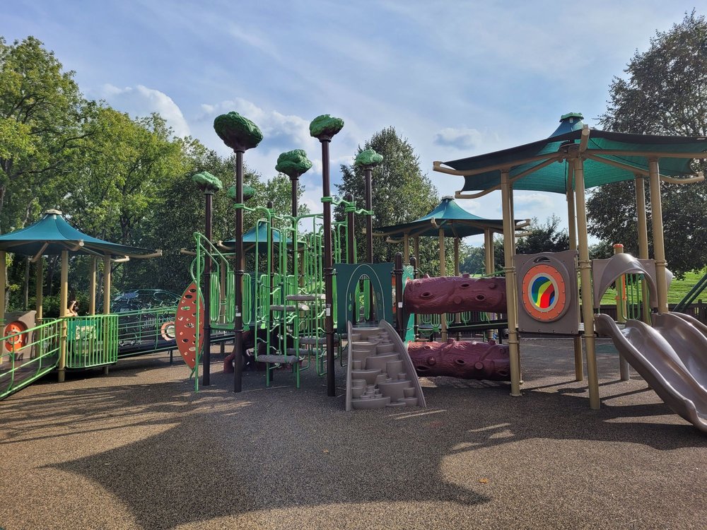A family-friendly play area in Manhattan’s Central Park with playgrounds, slides, and climbing structures for children.