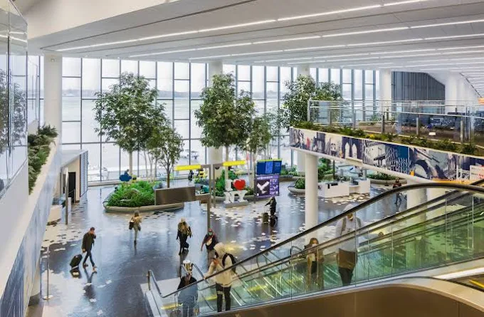 A major New York airport where families can watch planes and learn about air travel logistics.