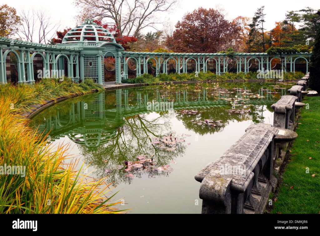 A historic estate on Long Island with beautifully landscaped gardens, walking paths, and guided tours suitable for families.