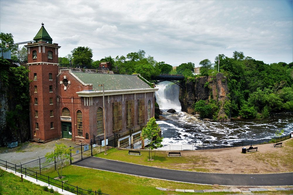 A park in Paterson featuring dramatic waterfalls, trails, and educational exhibits on industrial history.