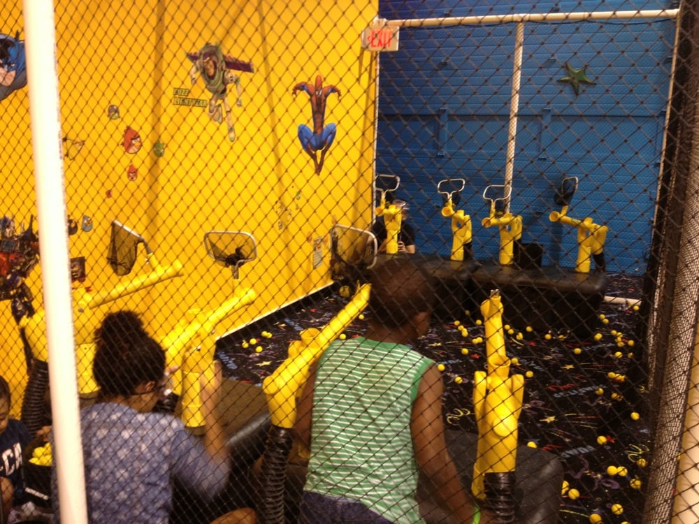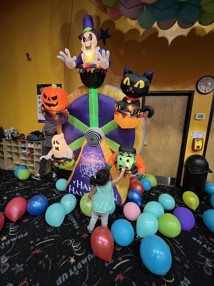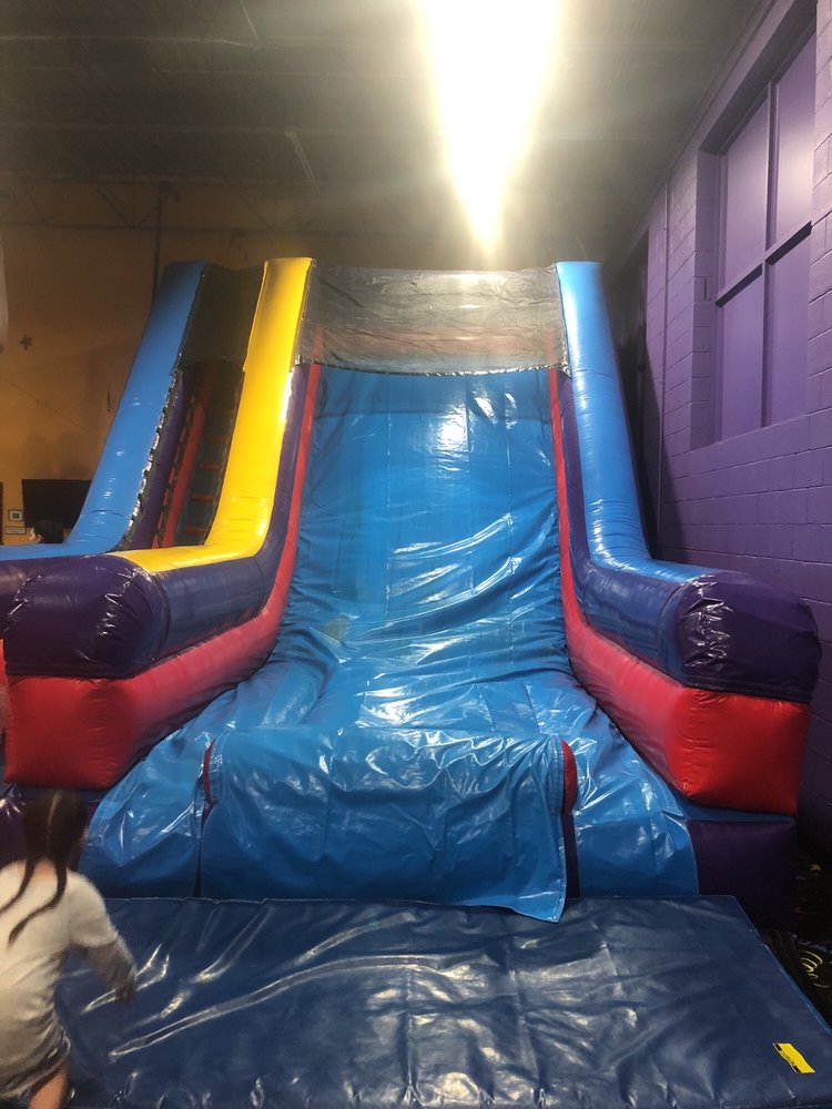 An indoor inflatable play center featuring bounce houses, slides, and obstacle courses, perfect for energetic kids and group celebrations.