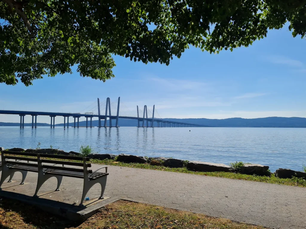 A waterfront walkway offering scenic river views, playgrounds, and easy walking paths suitable for all ages