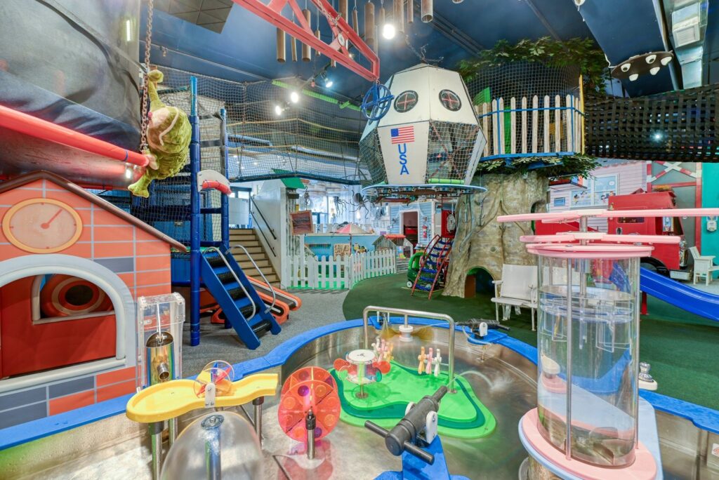 An adorable indoor play space with climbing options, ball shooting, and make believe dress-up time. Pretend to be a firefighter with a real water-spraying hose, visit the play salon and get your hair and makeup done, enjoy the slides and climb space, and much more!