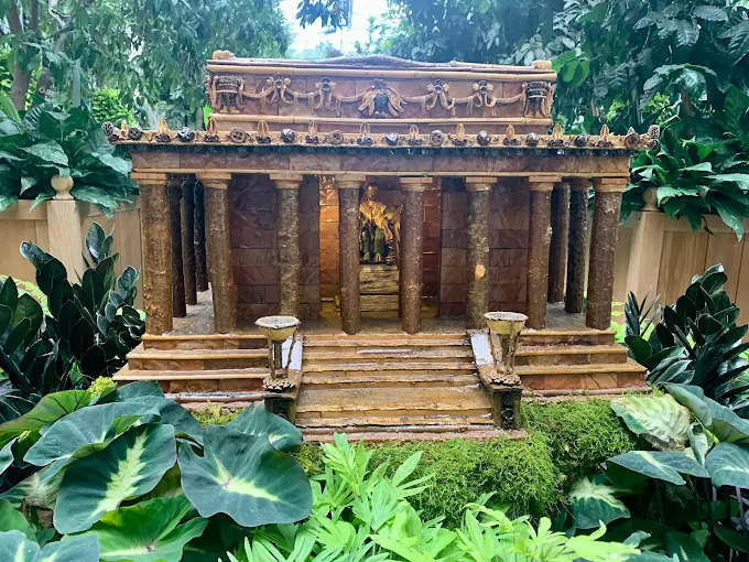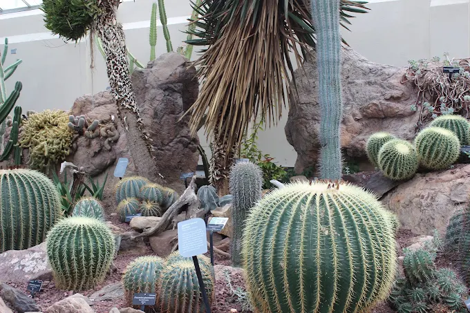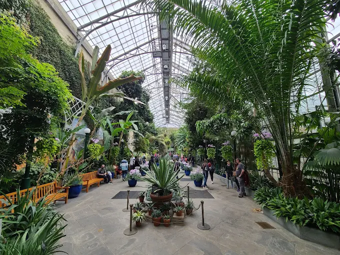A beautiful garden with themed plant exhibits, walking paths, and interactive educational programs for children