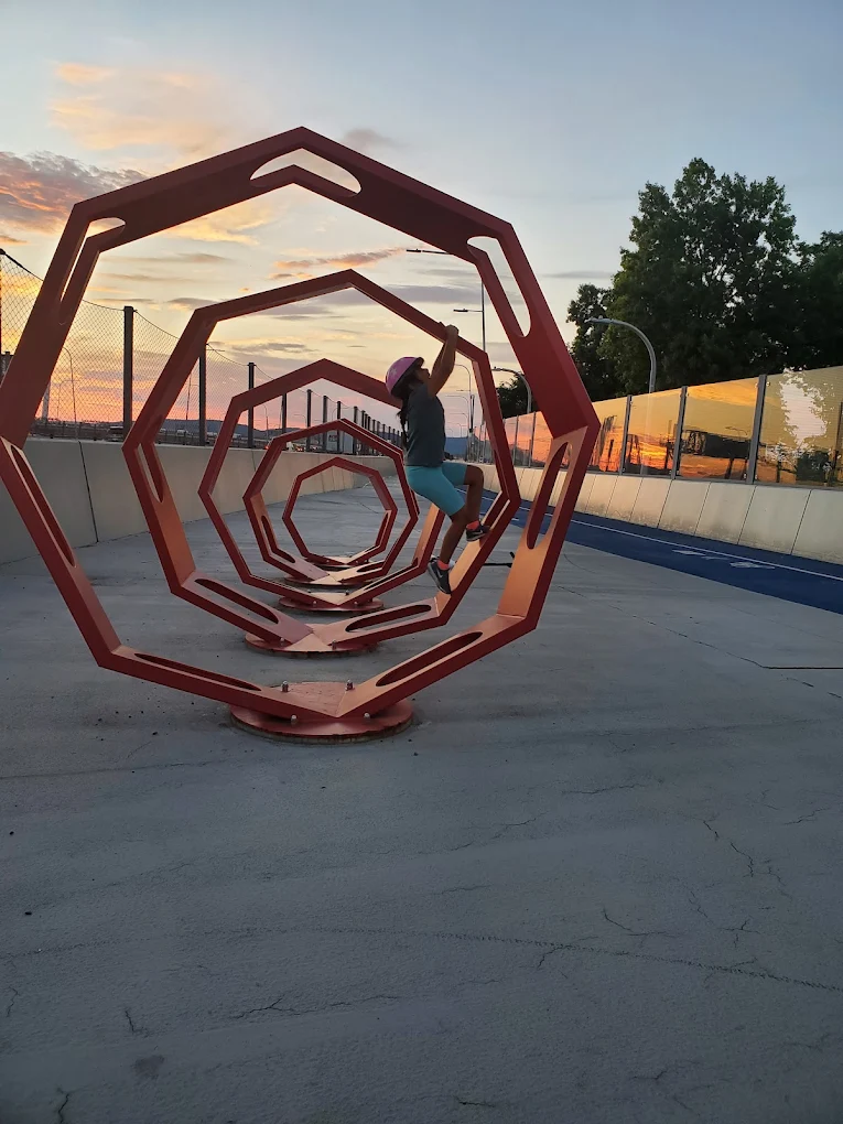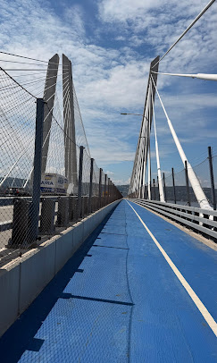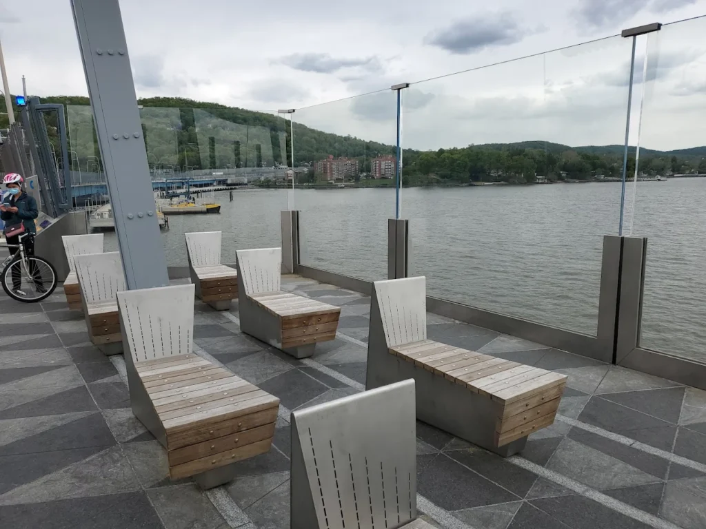 A pedestrian bridge offering panoramic views of the Hudson River, ideal for walking, sightseeing, and family photos