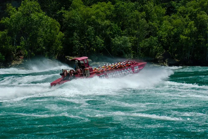 A thrilling jet boat adventure on the Niagara River, fun for families with older children